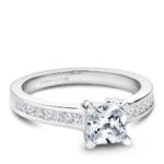 This style can accommodate round or princess and can be customized to fit a variety of diamond shapes, available by special order.