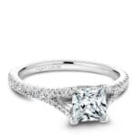 This style can accommodate round or princess and can be customized to fit a variety of diamond shapes, available by special order.